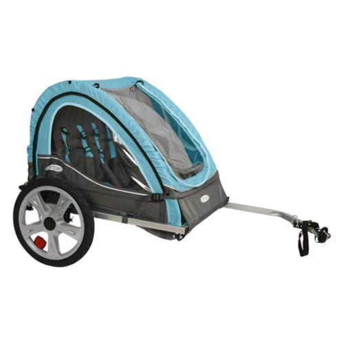 Take your family out on a bike ride in style with the InSTEP Take 2 Double Bicycle Trailer. While you'll appreciate the lightweight aluminum frame for carrying ease and fast assembly, it's durable enough to hold two children with a combined weight of up to 80 pounds. The 2-in-1 light blue canopy is crafted with a mesh screen to keep bugs away. It also features a weather shield to keep wind and raindrops from dampening your fun. On the inside, you'll find a sturdy harness to help secure your little passengers. The 16-inch pneumatic tires feature a quick release to make storage easier, while the versatile coupler on the front of the trailer will attach to almost any bike. Optional stroller kit sold separately. About InSTEP Now you can spend more time with your little one, get in the workout you need, and show your children how much fun a healthy lifestyle can be - and without the sticker shock. InSTEP prides itself on providing joggers and trailers that not only measure up to your expectations of comfort, performance, and convenience, but also appease your budget with outstanding value prices. InSTEP products have more features, more function, tasteful style, and sharp colors that you will be proud to roll out on the town. Hey, becoming a parent doesn't have to mean surrendering your sense of taste. Canopy with bug screen and weather shield. Frame folds, wheels release for easy storage. 16-in. pneumatic tires roll smoothly. Harness secures child in seat. Holds 2 children; 40 lbs. maximum weight each.